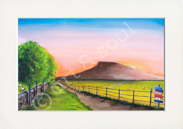 A signed print of an original painted by Mikey in acrylic paint of Roseberry Topping. A very distinctive and popular hill in North Yorkshire, England, near Great Ayton and Newton under Roseberry.