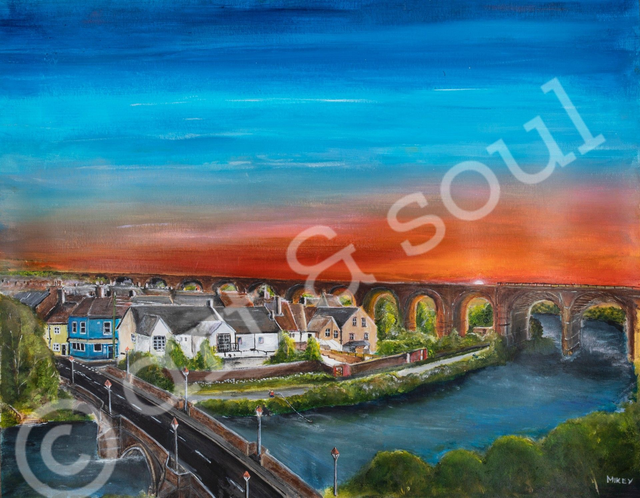 A signed print of an original painted by Mikey in acrylic paint of Yarm, a lovely town in the North East of England.